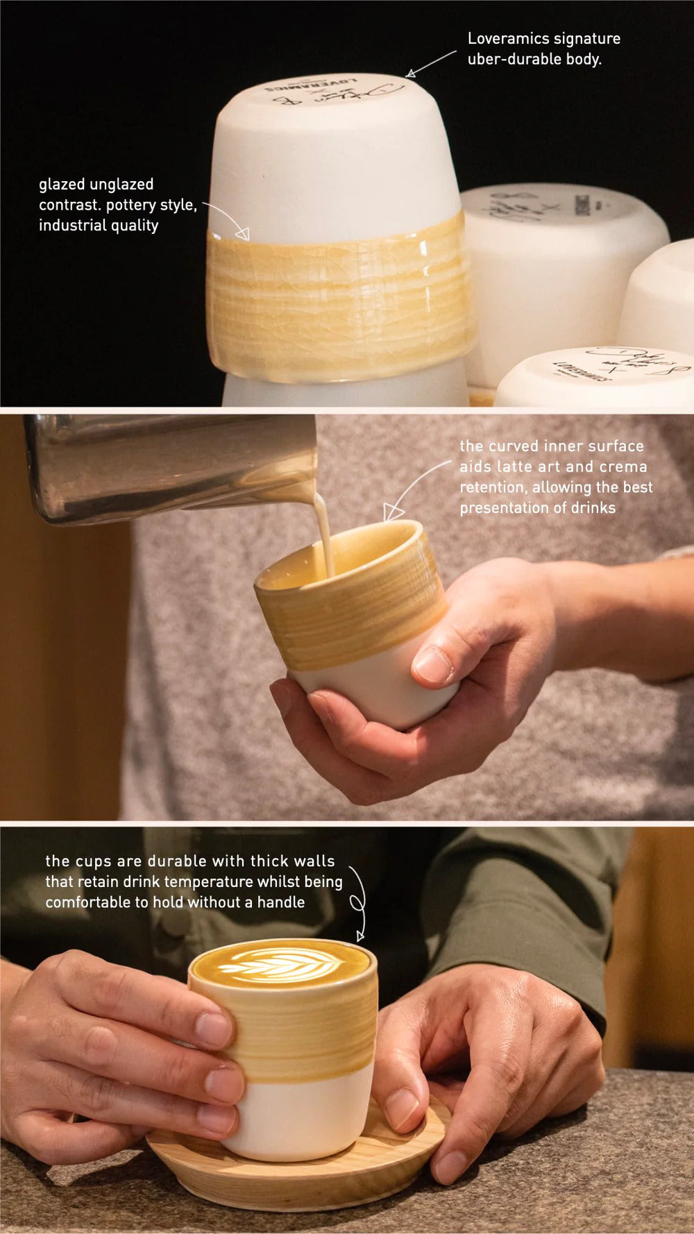 The curved inner surface aids latte art and crema retention, allowing the best presentation of drinks